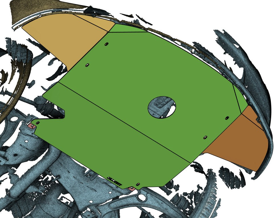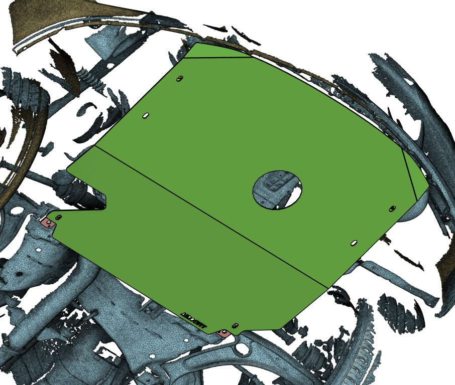 Precision cut from 3mm aluminium, this skid plate shields your oil pan, subframe and critical undercarriage components from road and track debris and abuse.