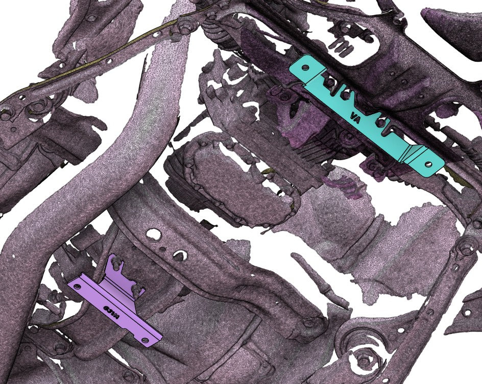 - Stainless steel folded brackets to move fasteners to more effective locations. Notice the factory and many aftermarket undertrays have one rear mount and ours has 2 rear fasteners spread apart to increase strength.