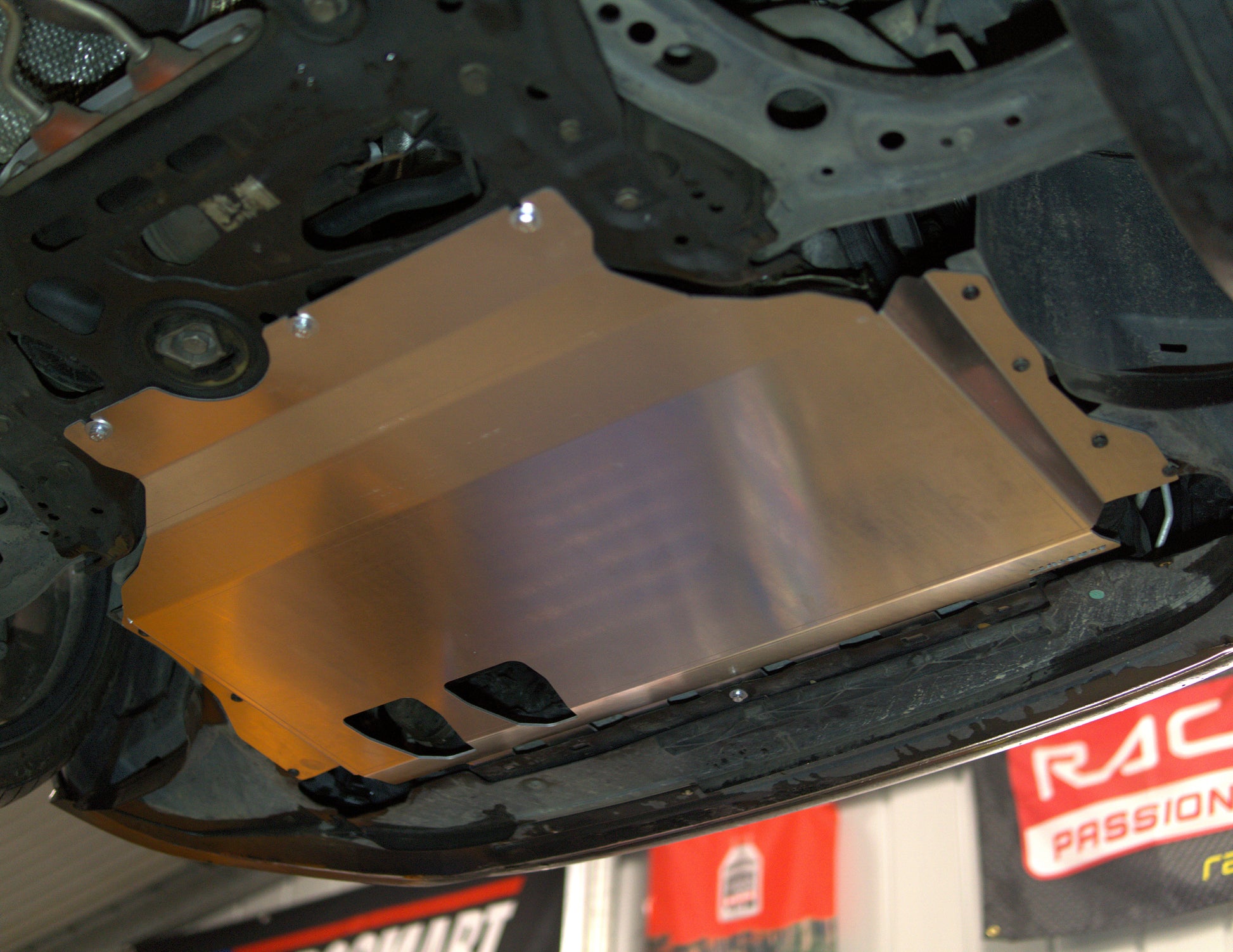 Precision cut from 3mm aluminium, this skid plate shields your oil pan, subframe and critical undercarriage components from road and track debris and abuse.